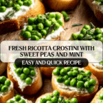 Ricotta Crostini with Peas and Mint is a light and refreshing appetizer that’s perfect for spring or summer gatherings. Crispy baguette slices topped with creamy ricotta, tender peas, and fragrant mint create a delightful balance of flavors and textures.
