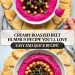 This Roasted Beet Hummus recipe offers a vibrant twist on classic hummus by blending creamy chickpeas with naturally sweet, oven-roasted beets. It’s a colorful, flavorful dip perfect for parties, snacks, or as a nutritious spread, combining earthy beet flavor with traditional Mediterranean seasonings.