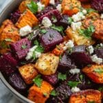 Roasted Beets and Sweet Potatoes with Feta and Cilantro is a vibrant, nutrient-packed side dish that perfectly balances the natural sweetness of root vegetables with a spicy seasoning blend and tangy feta cheese. This easy-to-make recipe delivers tender, caramelized veggies with a flavorful kick, topped with fresh cilantro for a bright finish. Ideal for family meals, potlucks, or as a hearty vegetarian main.