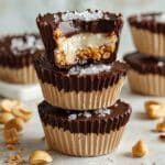 - Freeze and garnish: Freeze the assembled cups for 30 minutes to 1 hour until firm. Remove from the freezer, sprinkle with flaky sea salt, and serve. Keep stored in the freezer for up to 3 months for easy snacking.