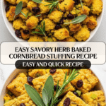 Keywords: cornbread stuffing, baked stuffing, herb stuffing, holiday side dish, vegetarian stuffing, savory cornbread recipe