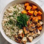 Savory Za’atar Chicken and Rice is a delicious Middle Eastern-inspired dish combining tender, marinated chicken thighs with aromatic basmati rice pilaf. The chicken is seasoned with za’atar, allspice, garlic, and fresh herbs, then cooked to perfection. Served with a flavorful garlic yogurt drizzle, this recipe offers a hearty and aromatic dinner perfect for any night of the week.