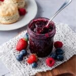 Keywords: mixed berry jam, homemade jam, small batch jam, strawberry jam, raspberry jam, blueberry jam, stovetop jam, easy jam recipe