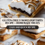 Elevate your snack game with these gluten-free S’mores Pop Tarts, packed with a luscious homemade chocolate fudge filling and topped with a light, fluffy marshmallow meringue frosting. Perfectly baked to golden perfection and finished with a toasted marshmallow topping, these pop tarts deliver a nostalgic campfire treat in a handheld pastry form.