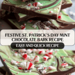 This St. Patrick’s Day Mint Chocolate Bark is a simple yet irresistible treat that combines rich dark chocolate with a refreshing peppermint-infused white chocolate layer. Swirled together and topped with crushed peppermint candies, it makes a festive and delightful snack perfect for celebrating the holiday.