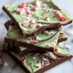 Celebrate St. Patrick’s Day with this Mint Chocolate Bark featuring a smooth dark chocolate base swirled with vibrant green-tinted peppermint-infused white chocolate. Topped with crushed peppermint candies, this festive treat is easy to make and perfect for sharing.
