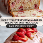 This Strawberry Banana Bread is a moist and flavorful twist on classic banana bread, incorporating fresh strawberries for a burst of fruity sweetness. Perfect for breakfast, snacks, or dessert, this recipe combines ripe bananas, juicy strawberries, and a blend of simple ingredients to create a delicious homemade treat.