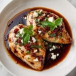 Strawberry Basil Chicken is a flavorful and elegant dish featuring juicy baked chicken breasts topped with fresh strawberries and aromatic basil. The chicken is marinated in a sweet and tangy mixture of olive oil, balsamic vinegar, honey, and garlic powder, then baked to perfection. A perfect balance of savory and sweet, this recipe is simple to prepare and perfect for a healthy weeknight dinner or a special occasion.