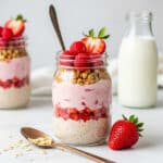 Keywords: overnight oats, strawberry cheesecake oats, easy breakfast, healthy breakfast, no-cook oats, make-ahead breakfast, creamy oats, chia seeds oats