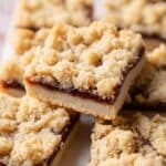 Strawberry Jam Shortbread Bars are a delightful treat featuring a buttery shortbread base and crumb topping with a luscious layer of strawberry jam in the middle. These bars are easy to make, combining simple ingredients into a delicious dessert perfect for any occasion.