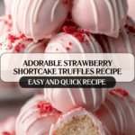 Imagine strawberry shortcake transformed into adorable bite-sized truffles, coated in pink chocolate and drizzled with white chocolate. These Strawberry Shortcake Truffles combine crushed vanilla cake with strawberry frosting for a sweet, fruity treat that’s as beautiful as it is delicious.