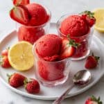 This refreshing strawberry sorbet is a simple and delightful frozen dessert made from fresh or frozen strawberries, sugar, water, and lemon juice. Perfect for hot days, this sorbet is naturally fruity with a bright citrus finish and requires no ice cream maker.