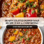 This hearty Stuffed Pepper Soup combines the flavors of classic stuffed peppers in a comforting, easy-to-make soup form. Featuring ground beef, bell peppers, tomatoes, rice, and a blend of aromatic herbs, this recipe can be prepared on the stovetop, Instant Pot, or slow cooker for a versatile, family-friendly meal perfect for any season.