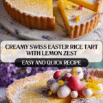 Enjoy the Swiss Easter Rice Tart, a creamy custard-filled delight that combines a tender buttery pastry crust with a smooth, lemon-scented rice custard enriched with ground almonds. This traditional dessert is perfectly baked to a golden finish and dusted with confectioners’ sugar, making it an elegant and comforting treat for festive occasions or any time you crave a rich, custardy dessert.