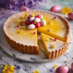 Enjoy the Swiss Easter Rice Tart, a creamy custard-filled delight that combines a tender buttery pastry crust with a smooth, lemon-scented rice custard enriched with ground almonds. This traditional dessert is perfectly baked to a golden finish and dusted with confectioners’ sugar, making it an elegant and comforting treat for festive occasions or any time you crave a rich, custardy dessert.