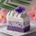 Taro Ube Cloud Cake is a light and fluffy Filipino-inspired dessert that combines the subtle earthiness of taro with the vibrant sweetness of ube. This beautiful multi-layered cake is frosted with a luscious ube whipped cream, perfect for special occasions or a delightful treat anytime.