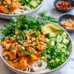 Thai Peanut Chicken Noodle Bowls are a quick and delicious meal bursting with vibrant flavors. This dish combines tender shredded chicken, fresh vegetables, and a creamy peanut sauce for a satisfying bowl that’s perfect for busy weeknights.