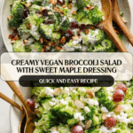 A refreshing and creamy vegan broccoli salad featuring a tangy cashew-based dressing, crunchy almonds, sweet grapes, and dried cranberries. This easy-to-make salad is perfect as a healthy side or light lunch and ready in just 15 minutes.