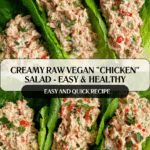 This original raw vegan mock “chicken” salad is a deliciously creamy and crunchy plant-based dish that comes together in just 10 minutes. Made without chickpeas, eggs, soy, or processed mayonnaise, it’s a fresh and healthy choice perfect for sandwiches, wraps, or enjoying on its own.