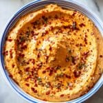 Tirokafteri is a vibrant and spicy Greek feta dip made with roasted bell peppers, creamy feta cheese, Greek yogurt, and a kick of red pepper flakes. Perfect as a flavorful appetizer served with pita chips, veggie sticks, or alongside grilled dishes, this easy-to-make dip blends creamy and tangy flavors with a spicy punch in just 10 minutes.