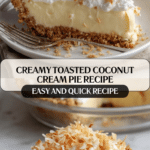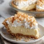 This Toasted Coconut Cream Pie features a crisp graham cracker crust filled with a rich, creamy coconut custard and topped with fluffy whipped cream and toasted coconut flakes. The pie combines the tropical flavor of coconut milk and shredded coconut with a smooth, velvety texture, perfect for a refreshing dessert that impresses at any occasion.