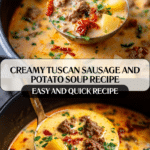 Tuscan Sausage and Potato Soup is a comforting and flavorful dish that combines savory Italian sausage, tender gold potatoes, creamy white beans, and sun-dried tomatoes in a rich broth. Finished with a swirl of basil pesto, this soup offers a delightful twist on classic flavors that’s easy to prepare and perfect for chilly days.