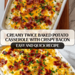 This Twice Baked Potato Casserole is a comforting and cheesy side dish perfect for family dinners. Made with tender baked potatoes, crispy bacon, melted cheddar cheese, and seasoned sour cream, this recipe delivers creamy, flavorful layers baked to perfection. Ideal for gatherings or a cozy meal, it offers a rich, savory twist on classic baked potatoes.