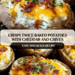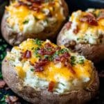 These Twice Baked Potatoes are a comforting and delicious side dish featuring crispy potato skins filled with a creamy mixture of mashed potatoes, sour cream, cheddar cheese, and fresh chives. Perfectly baked twice for a golden, cheesy topping and a smooth, flavorful interior, they make a great accompaniment to any meal.