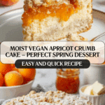 Keywords: Vegan Apricot Crumb Cake, vegan dessert, apricot cake, crumb topping cake, plant-based cake, dairy-free cake