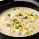 Keywords: Vegan corn chowder, dairy-free corn chowder, vegan soup, comforting vegan recipes, plant-based chowder