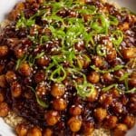 This Vegan Sticky Sesame Chickpeas recipe features tender chickpeas coated in a luscious, sticky sauce made from soy sauce, maple syrup, and toasted sesame oil. It’s a flavorful, satisfying plant-based dish perfect served over rice or quinoa with a side of steamed or roasted vegetables.