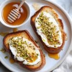 - Drizzle and Top: Drizzle additional honey over the ricotta-covered toast. Finish with your choice of optional toppings such as crushed pistachios, walnuts, flaky sea salt, lemon zest, fresh thyme, or fresh fruit.