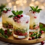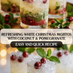 A refreshing and tropical twist on the classic mojito, the White Christmas Mojito blends zesty lime juice, fresh mint, white and coconut rums, creamy coconut milk, and sparkling water. Garnished with pomegranate arils and extra mint leaves, this festive cocktail is perfect for holiday gatherings or warm-weather celebrations.